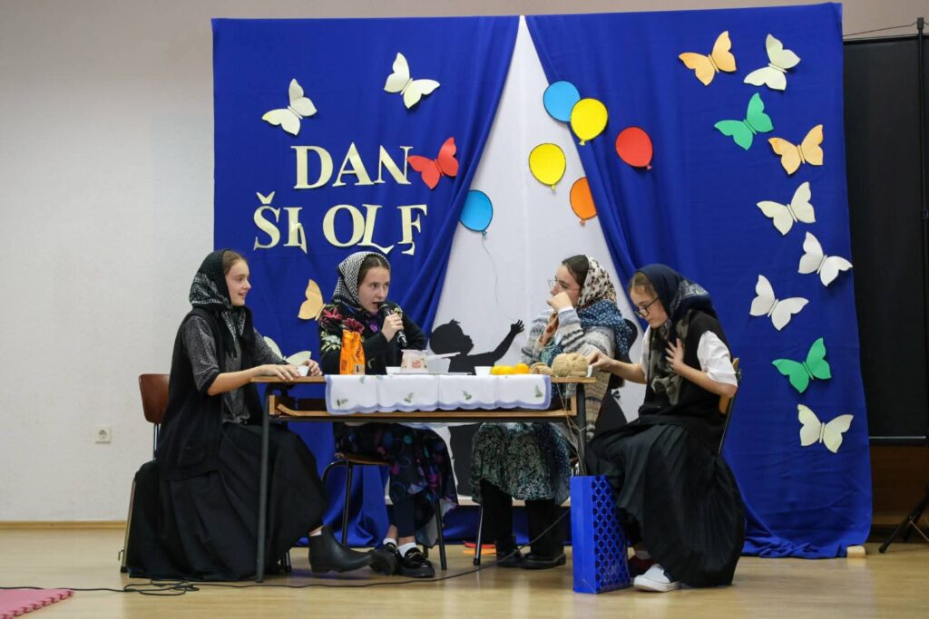 Mnogo truda učenice i učenici uložili su u pripremu i izvedbu igrokaza „Panika u Strahogradu“ (8.b) i „Seoska inspekcija“ (7.a i 8.a) koji su nasmijali publiku.