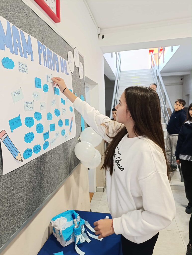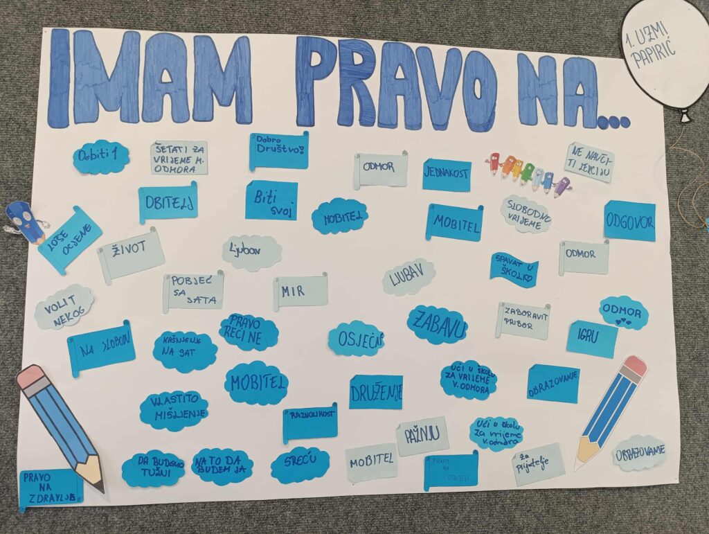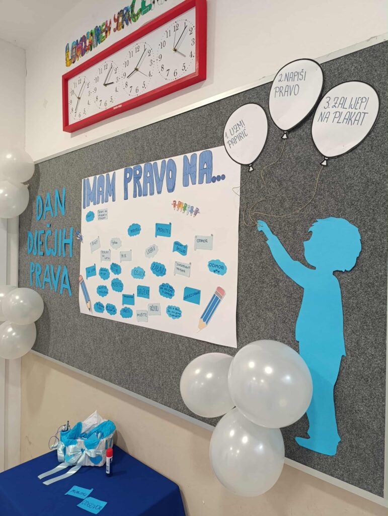 Na našem posebnom kutku prava učenici su zapisivali svoja prava. To je bio mali podsjetnik da svako dijete ima pravo na sreću, igru, prijateljstvo i ljubav.