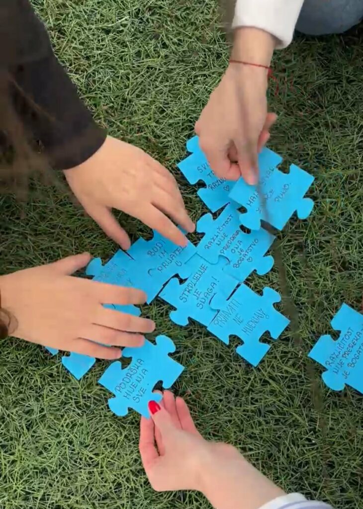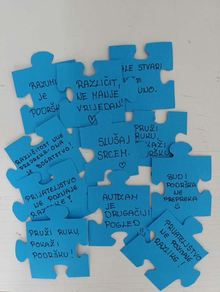 Povodom obilježavanja Svjetskog dana svjesnosti o autizmu, pedagoginja škole osmislila je aktivnost u kojoj su učenici 9. razreda sudjelovali s ciljem širenja poruke razumijevanja, prihvaćanja i podrške osobama s autizmom.Kroz izradu bedževa u obliku puzzli učenici su simbolično prikazali različitost i jedinstvenost, dok je završni trenutak obilježilo puštanje plavih balona kao znak solidarnosti i zajedništva.