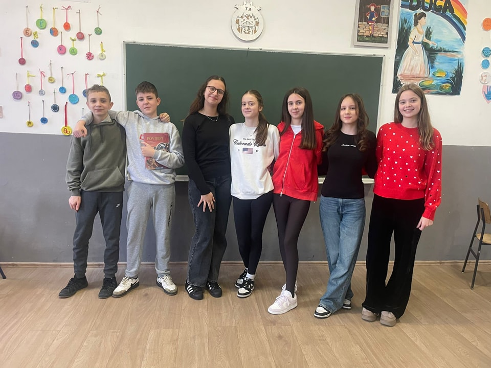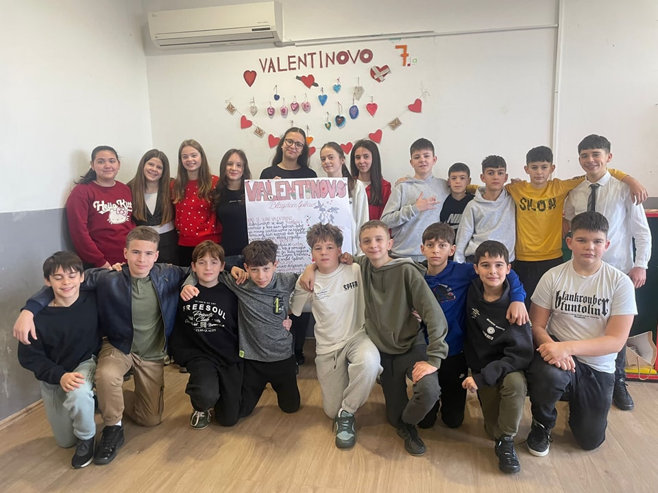 I ove godine u 7.a razredu bilo je veselo. Obilježili smo Valentinovo prigodnim igrokazima i druženjem. Svatko je izradio jedno srce kao znak zajedništva i prijateljstva, a za plakat su se pobrinule Ivana Milićević i Lorena Šimović.Za palačinke u obliku srca koje su bile ispunjene čokoladom pobrinula se Nika Prusina.
